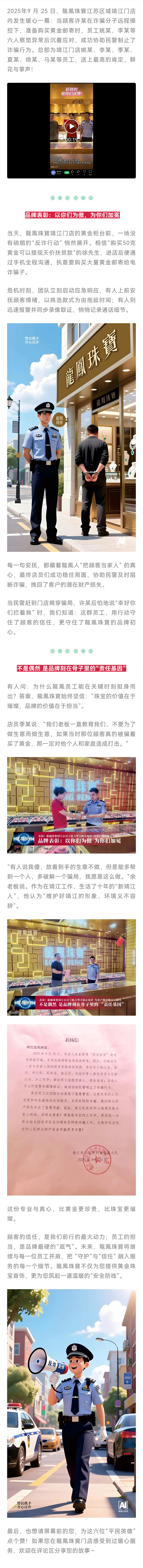 表扬!龍鳳珠寶靖江店员工助力警方阻止电诈 为客户挽回数万元损失
